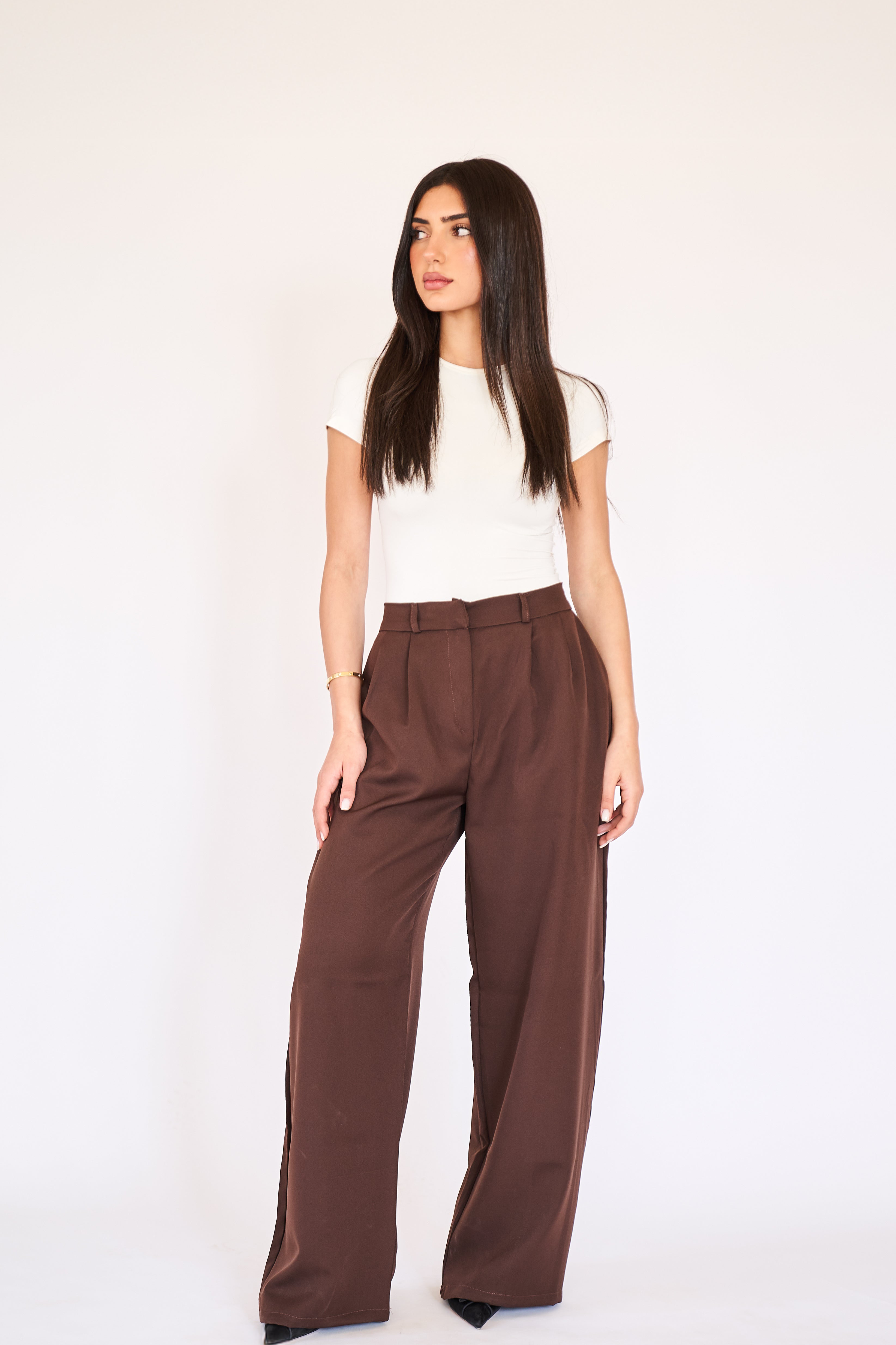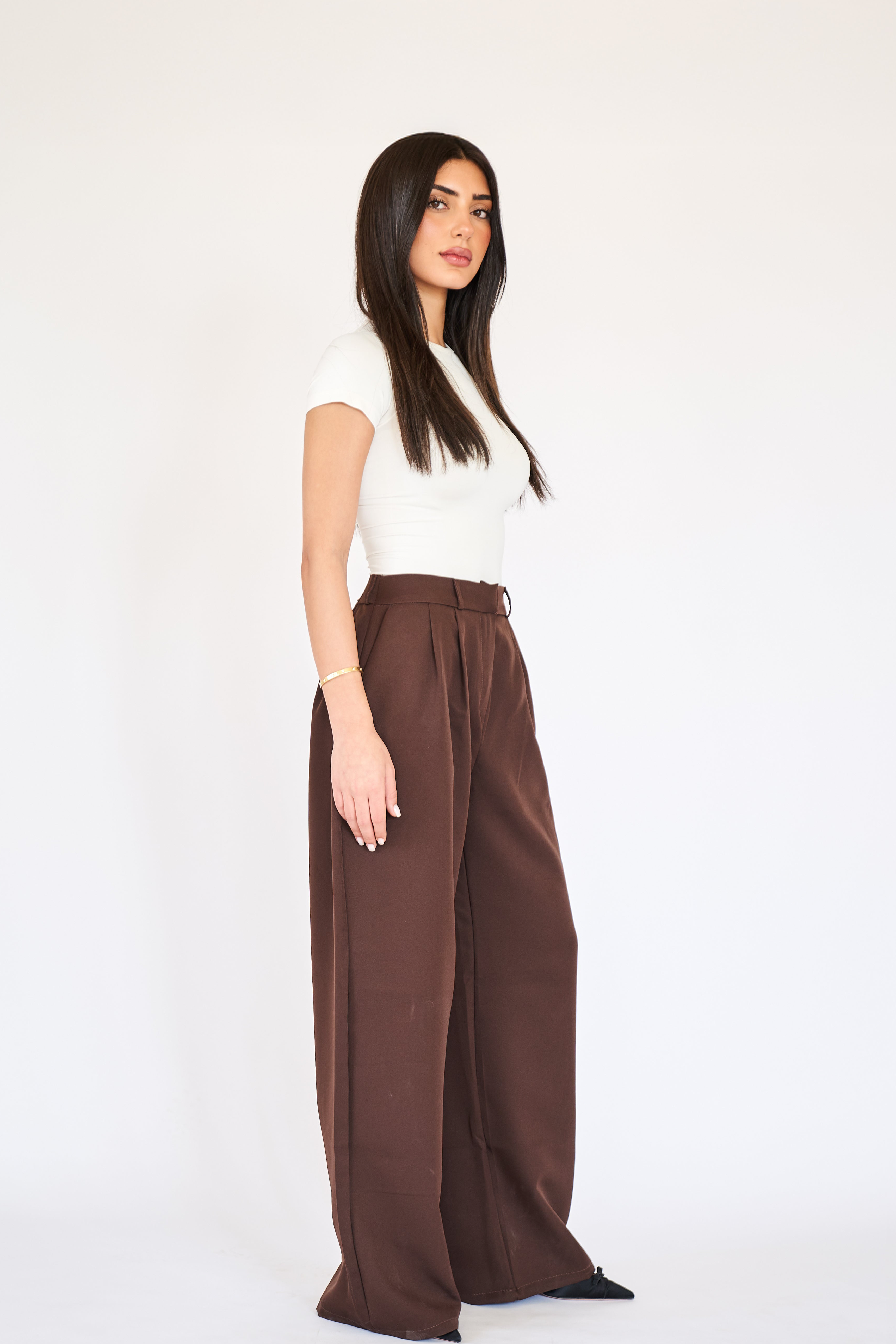 Pleated Suit Pants - Brown