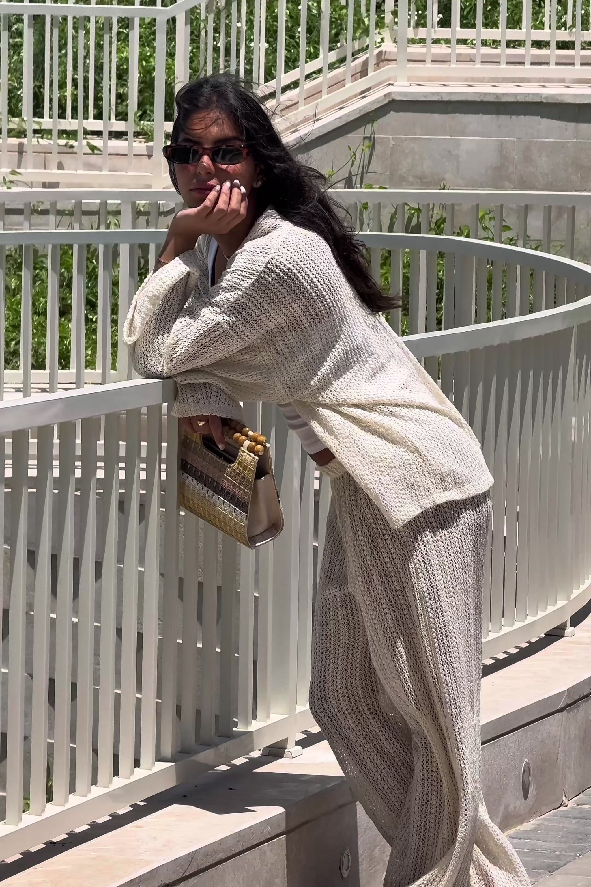 -Loose-fit cardigan with dropped shoulders and wide sleeves.