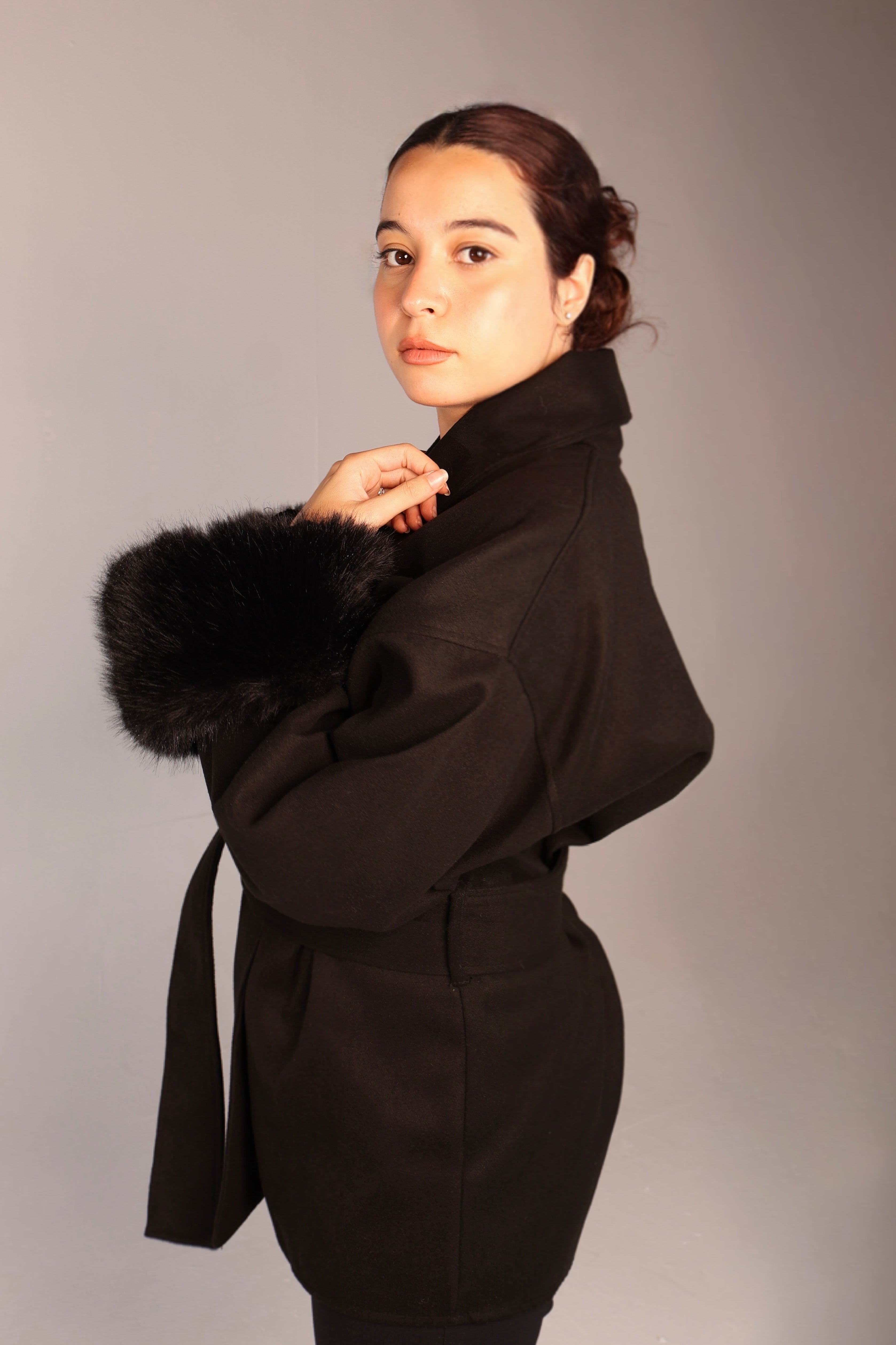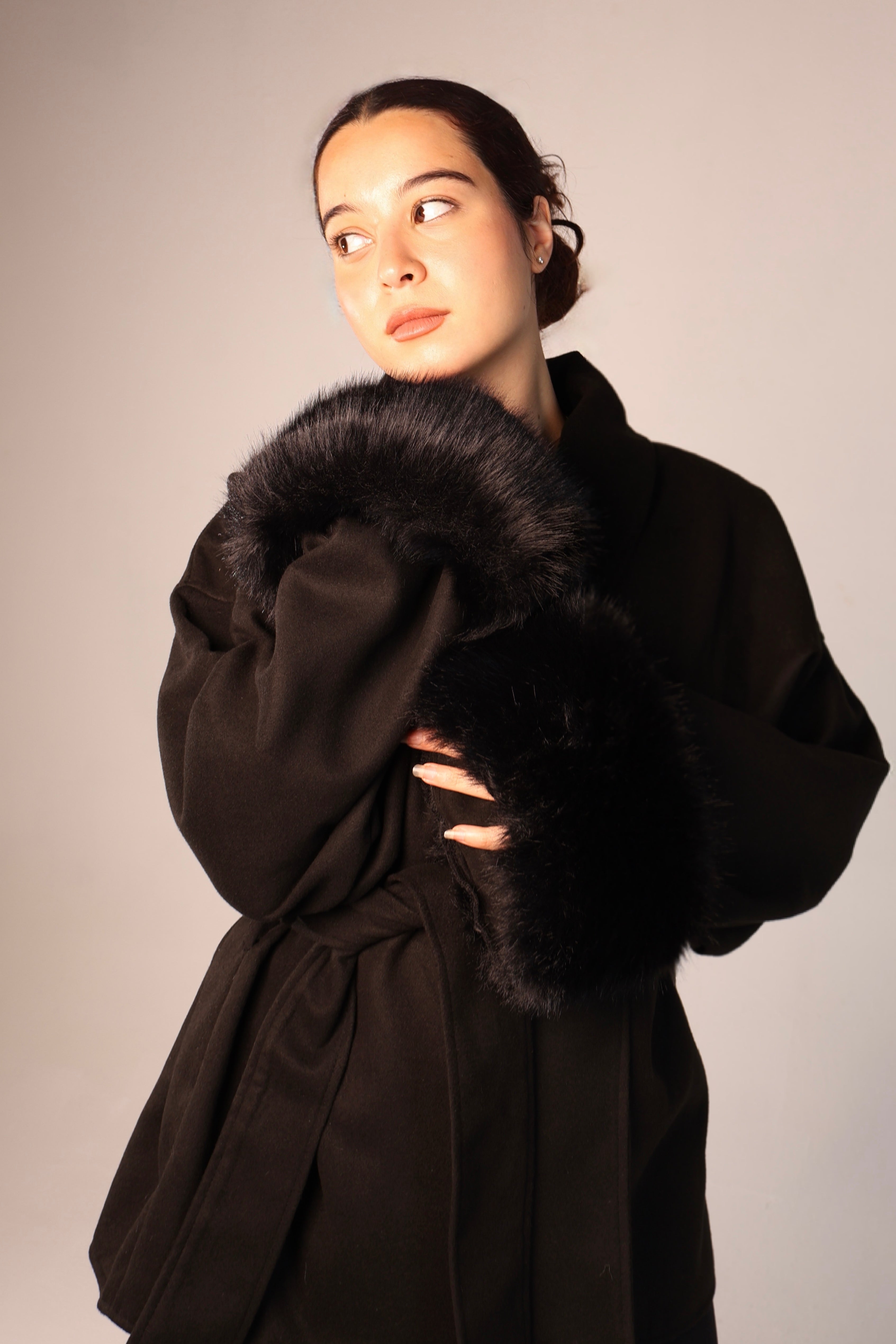 Cuffed Wrap Coat - Black