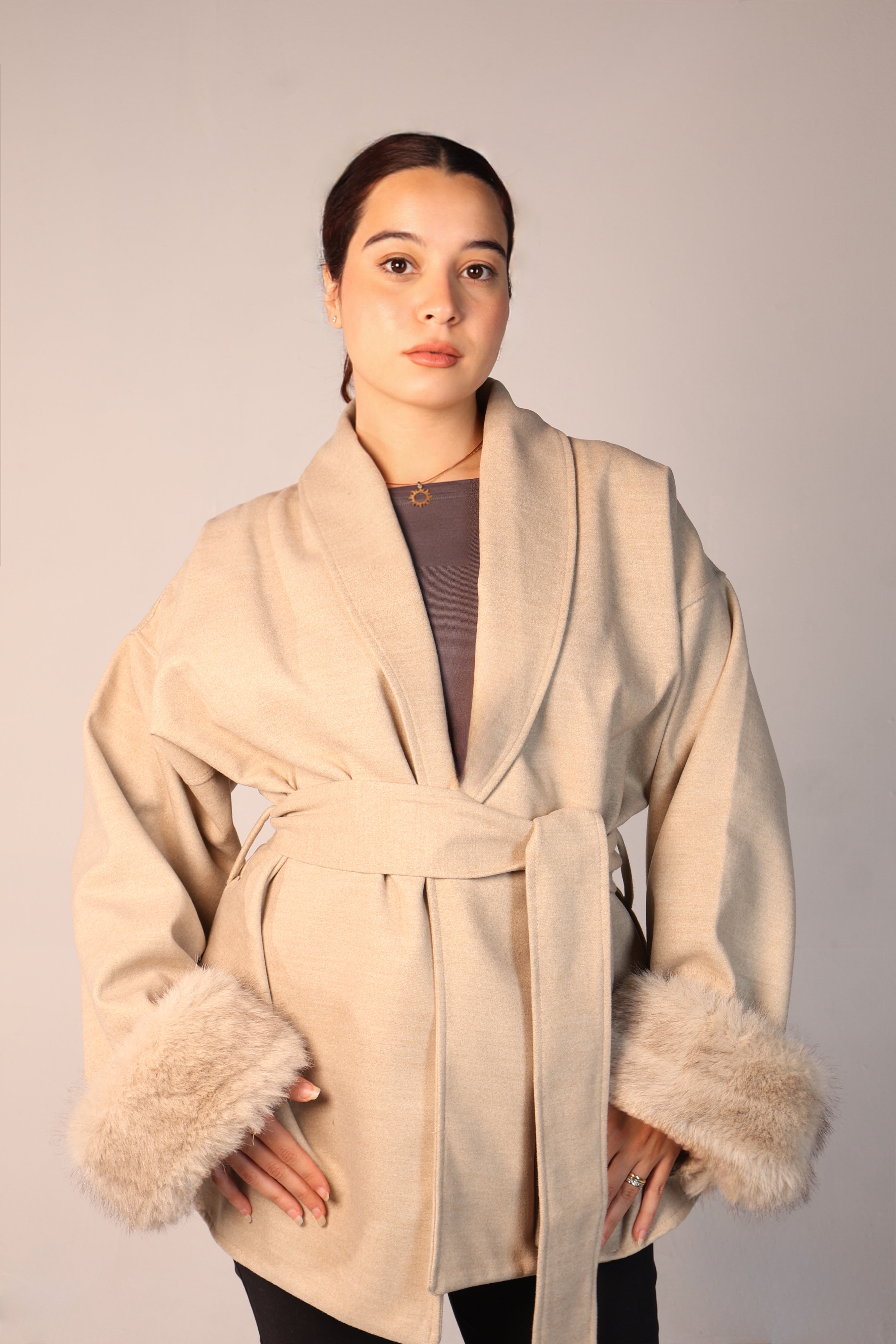 Cuffed Wrap Coat - Beige