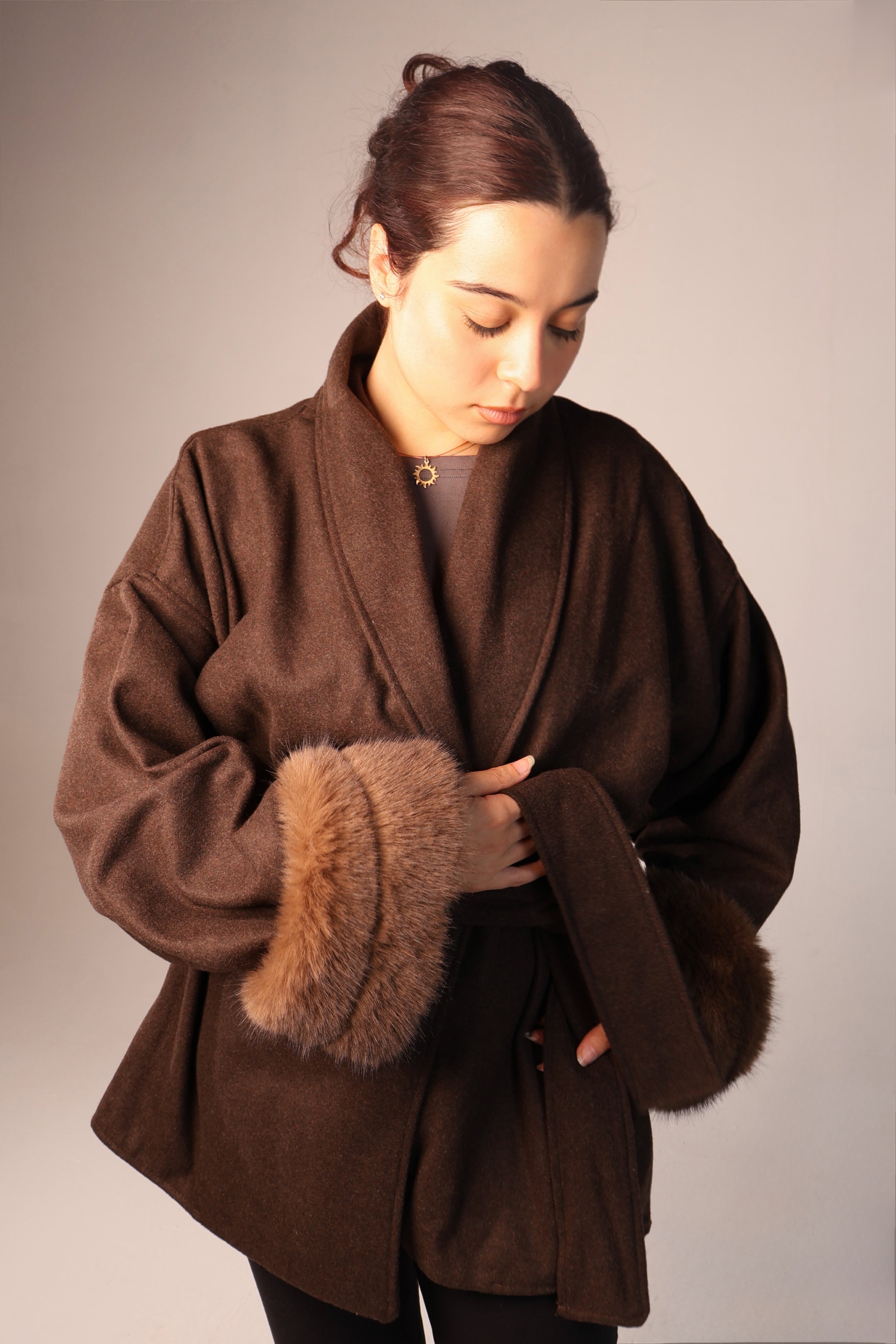 Cuffed Wrap Coat - Brown